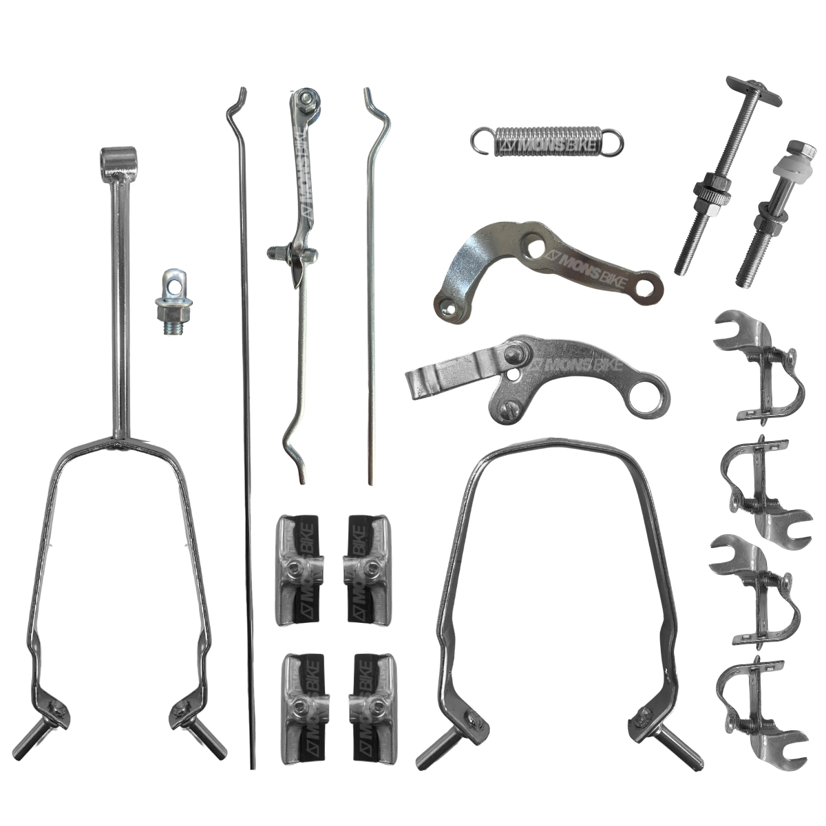 Feito em aço zincado reforçado e na cor cromada para proporcionar um visual clássico e elegante. Esse freio é ideal para o uso em sua bicicleta dos modelos mais antigos como Monark, Barra Forte e Barra Circular.